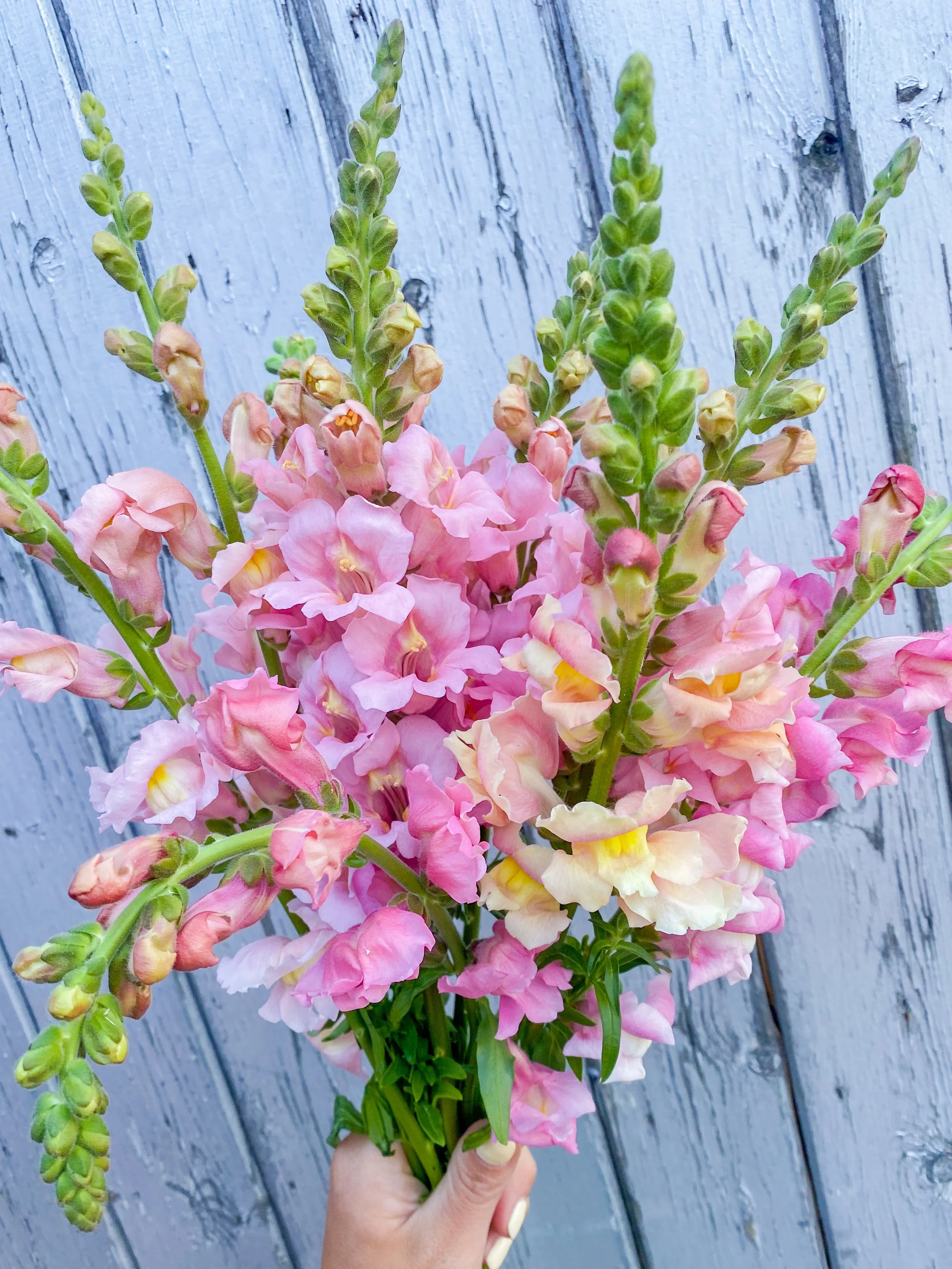 One of the elements I always like to include in my hand-tied bouquets is a spike and snapdragons are one of my favorites.